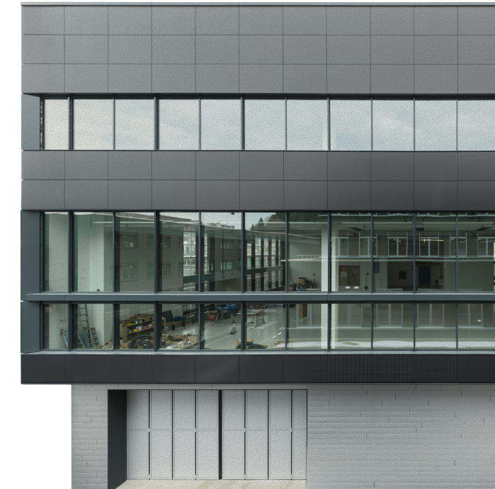 Zum anderen vereint die Ausstattung der 3 unterschiedlich genutzten Gebäude auch höchste Ansprüche an die Funktionalität und die Architektur. Sie umfasst smarte Gebäudetechnik, state of the art Energiekonzepte wie einen zukunftsweisenden Energiepark mit der Weltneuheit CoolShift sowie vielfältige Labore für das Messen physikalischer Leistungsdaten bei Kühl- und Heizdecken sowie der thermischen und akustischen Behaglichkeit.
